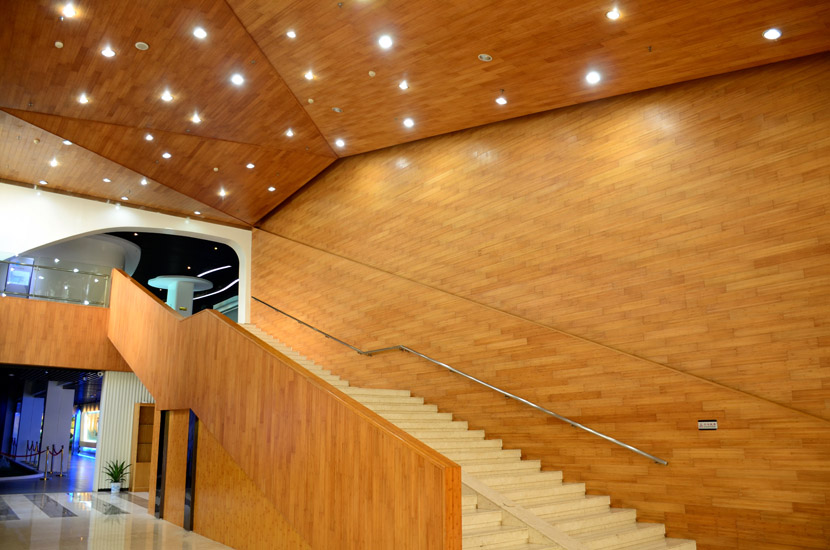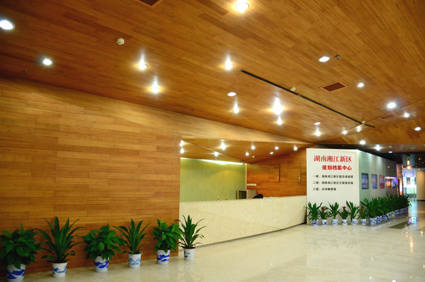 湖南湘江新區(qū)規(guī)劃展示館位于長(zhǎng)沙市瀟湘南大道383號(hào)(洋湖濕地公園東門對(duì)面),總建筑面積7000余平方米。展館成立于2011年6月,主要負(fù)責(zé)展示湖南湘江新區(qū)建設(shè)成就和發(fā)展規(guī)劃,是展示湖南湘江新區(qū)形象的重要窗口。展館大面積采用桃花江室內(nèi)竹材進(jìn)行裝飾,設(shè)計(jì)師運(yùn)用質(zhì)樸的天然竹材烘托出展館的綠色建筑理念和湖湘文化底蘊(yùn),使得展館更具品位。館內(nèi)竹材裝飾歷經(jīng)5年仍然保持良好狀態(tài),沒有任何發(fā)霉、變形和開裂現(xiàn)象,有力證明了桃花江室內(nèi)裝飾竹材的高品質(zhì)。