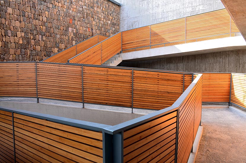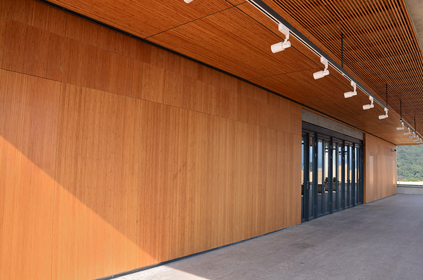 美術(shù)館大量運(yùn)用桃花江戶(hù)外防腐竹材和室內(nèi)裝飾竹材,是典型的竹元素主題建筑,在文化場(chǎng)所的建設(shè)中竹材是設(shè)計(jì)師表達(dá)設(shè)計(jì)文化內(nèi)涵的有力工具。