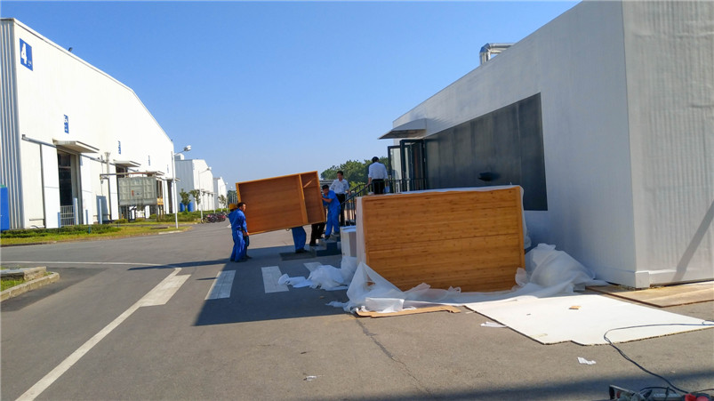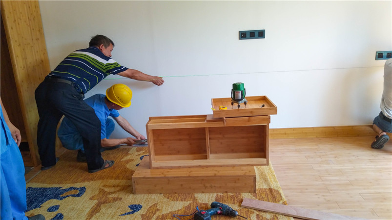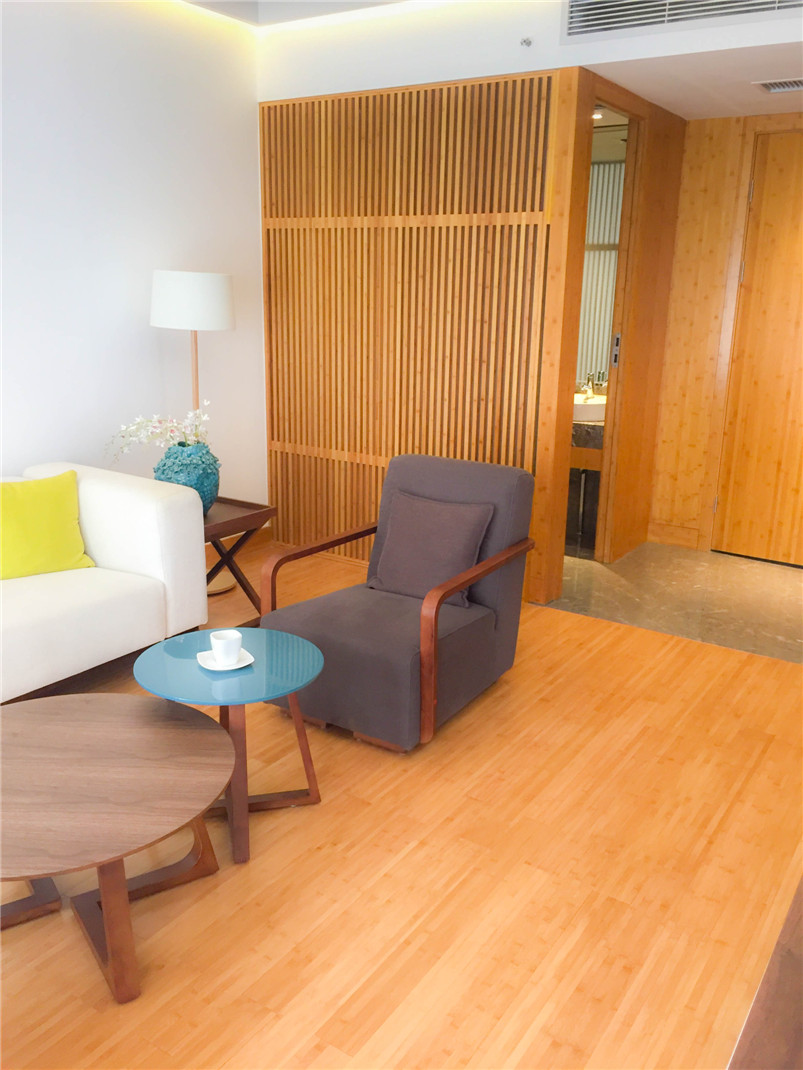 遠(yuǎn)大可建是遠(yuǎn)大科技集團(tuán)全資子公司,是全球持續(xù)建筑的先驅(qū),創(chuàng)造360小時建成30層精裝酒店的奇跡,目前在可持續(xù)酒店產(chǎn)品進(jìn)行深度研發(fā)?;趯χ癫牡南矏酆蛯χ癫沫h(huán)保的高度認(rèn)可,遠(yuǎn)大總裁張躍親自參與此次與桃花江竹材科技在其塔式酒店產(chǎn)品竹整裝項目的洽談。在遠(yuǎn)大可建汨羅工廠,酒店竹整裝三套樣板間安裝施工已基本完成,內(nèi)部裝飾全部在桃花江竹材科技工廠加工后運(yùn)至在現(xiàn)場組裝,地面鋪設(shè)竹地板,整體效果簡潔、自然、溫馨。遠(yuǎn)大總裁張躍視察樣板間后對竹材裝飾效果十分滿意,表示將加大對可建酒店竹整裝項目的研發(fā)與推廣,加強(qiáng)與桃花江竹材科技的深度合作,期望未來全世界每三幢新建建筑就有一幢是可建。